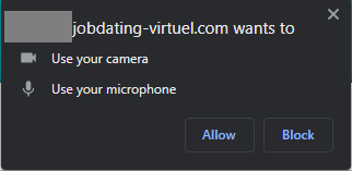 Le navigateur vous demande l’autorisation d’utiliser le micro et la webcam sur cette page, il faut autoriser pour continuer.