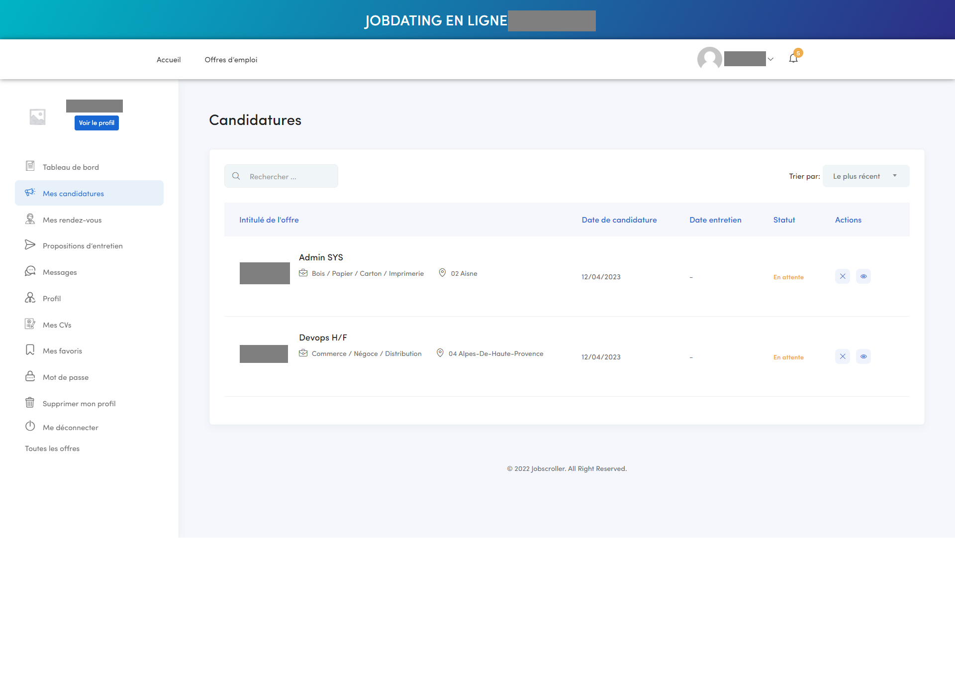 Les propositions d’entretiens reçues se trouvent dans cet onglet.